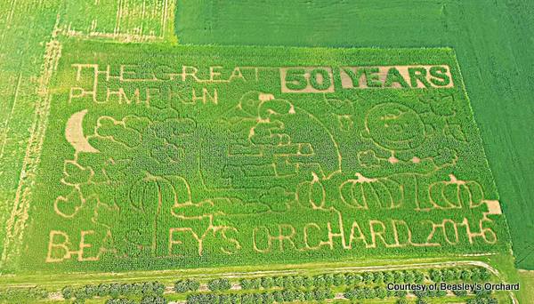 It’s the Great Pumpkin, Charlie Brown! Will Linus find the Great Pumpkin this year? Or, will some youngster navigating the corn maze at Beasley’s Orchard beat him out? The Danville, Indiana, orchard is one of a few orchards across the United States participating in the 50th anniversary of Charles Schultz’s “It’s the Great Pumpkin, Charlie Brown!”-themed corn mazes.