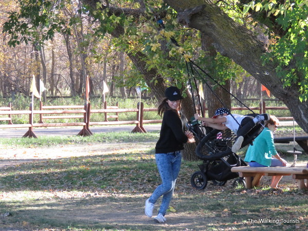 Homemade swings are scattered around the grounds. As a kid, was there anything more fun than handing on dear life while someone pushed you on a tire swing? If kids today were like us, they try to push the swing as fast as they can.