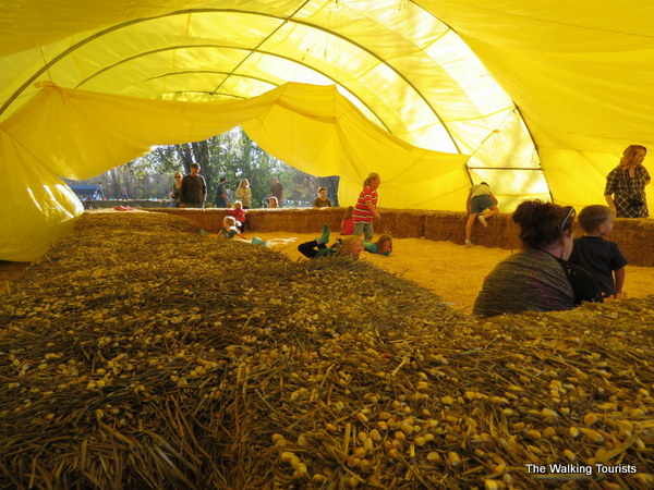 A corn crib allows kids to play with their food. Well, at least corn. They can fill up buckets and dump them or just jump around in the corn. Even some adults joined the youngins’ for some fun in the corn.