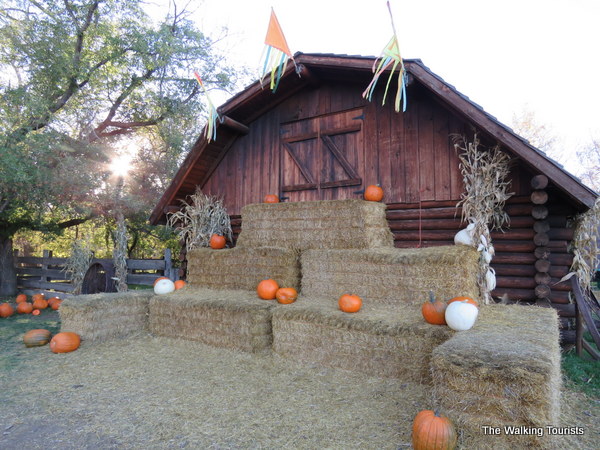 A barn is decorated with hay bales and pumpkins. It’s a popular spot for photos. We observed some couples having a photo session there. Families were also taking part in the photo ops.