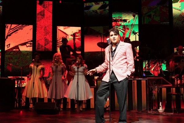 The tribute singer is backed up by a small band featuring guitars, bass, drum, keyboards and a horn section, and The Lovettes, a trio of women singers.