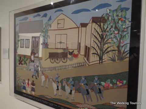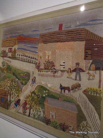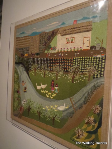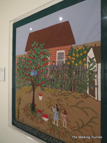 Esther would tell her daughters stories about her childhood. As she turned 50, she decided to put the stories to fabric. Her family encouraged her to continue after viewing the first panel. She created two panels in 1977. Then, nothing was added until 1999.