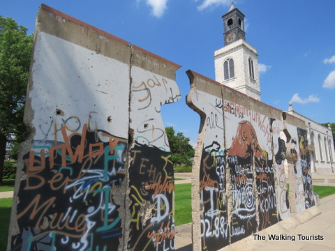 The Churchill Museum is home to a piece of the Berlin Wall. “Breakthrough,” an art piece by Churchill’s granddaughter Edwina Sandys, stands near the church building. Sandys used eight pieces of the Berlin Wall to create the project.