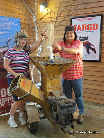 Inside, the movie’s wood chipper prop awaited us. It’s such a popular attraction that the center has hats that people can wear for photos. A staff member was kind enough to take some pictures of Lisa and me donning our winter hats and trying to get rid of that darned leg. She gave me a strange look as we left when I mentioned I would love a wood chipper for Christmas.