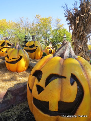 The park has a play area near the entrance, where kids can climb on large jack-o-lantern props.