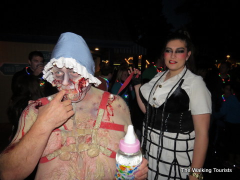 As the monsters gather, they start working up a frenzy, moving through the audience, scaring people. Then, the 400 creatures start their parade. It lasts a few minutes and is pretty intimidating to watch. Once they complete the parade, the creatures disperse to their specific haunts – mazes and scare zones.