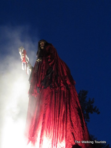 Then, suddenly, at 7 p.m., smoke and fire erupt, and up comes the Overlord. The leader of the 400 creatures, starts calling the zombies, spirits, monsters et al to wreak havoc over the park and the “victims” inside.