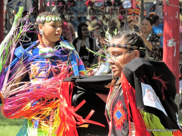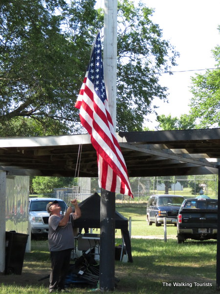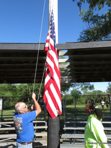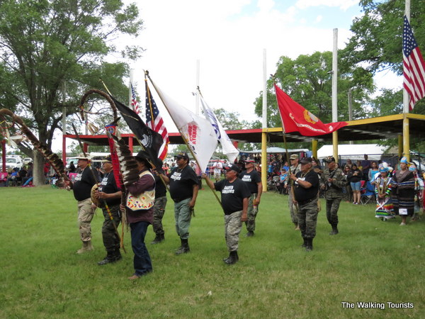 We attended a flag raising ceremony a few hours before the powwow started on Saturday. American flags provided by family members were raised in honor of tribal members who had passed away. Flags belonged to veterans of World War I, World War II, Korea and Vietnam. One flag belonged to a former Code Talker from World War II. Native Americans served as communication specialists during WW II because they could use their traditional language. The enemy couldn’t understand or decipher the languages.