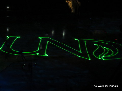 North Dakota runs a class operation. Fans are treated to a professional-level experience during the games. We had a laser light show on the ice during one period intermission. The show ended with a hockey player shape bordered in green light, and then showed the UND logo on the ice.
