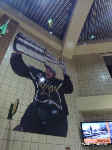 Huge pictures of former players dot the walls of the concourse. Ed Belfour is carrying the Stanley Cup trophy he won with the Dallas Stars as National Hockey League champions. Matt Greene is on a wall with his Cup won with the Los Angeles Kings last season.