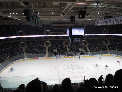 Inside the arena, fans can have a great view of hockey action from any spot. Nothing blocks your view, except for the occasional camera operator. But, since almost every UND hockey game is on TV (regionally or nationally), you get used to it.