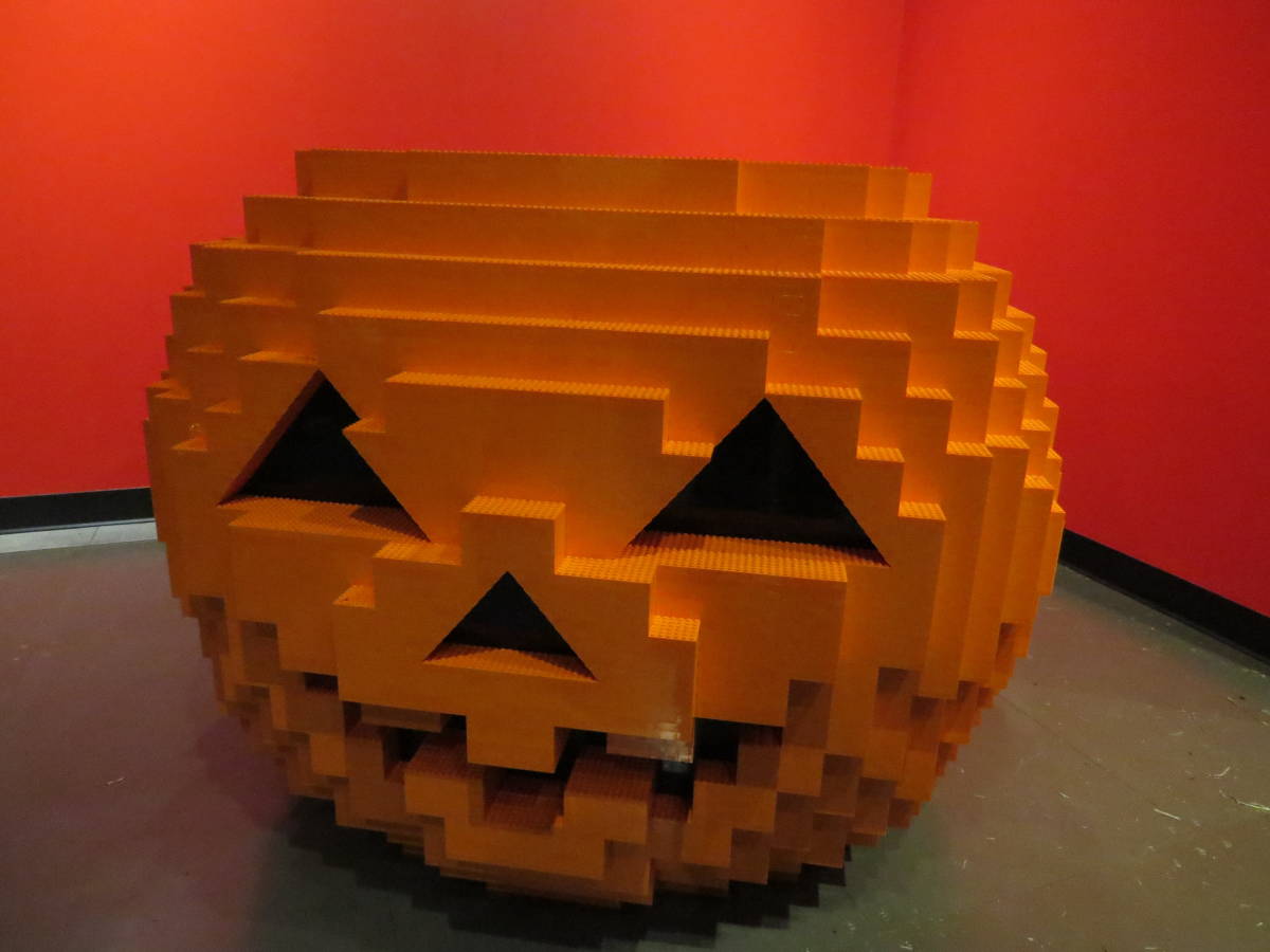 Afterward, we visited the seasonal decoration room. This room has a super-large pumpkin, made from legos. People were able to pose for pictures inside the pumpkin.