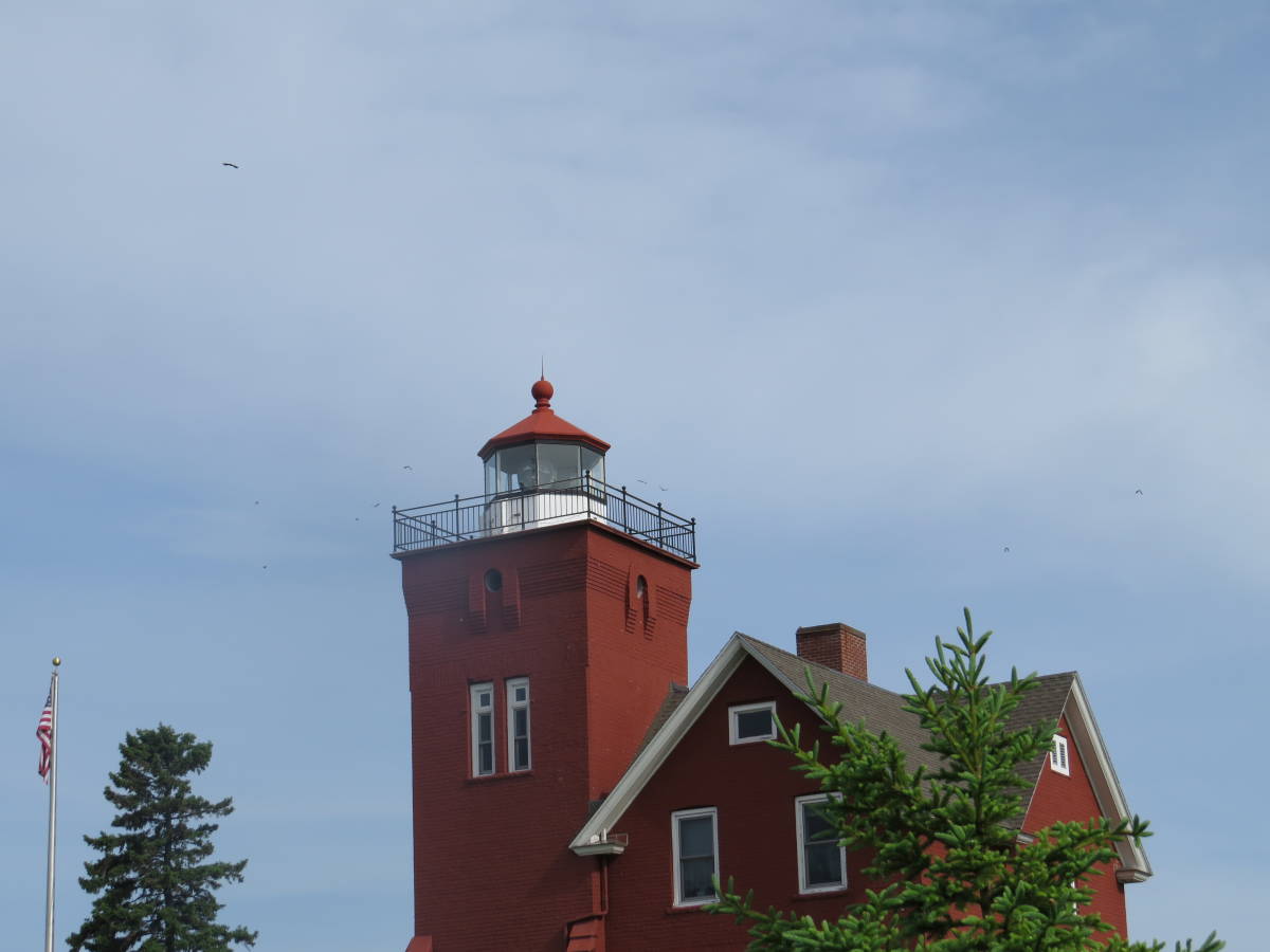The Two Harbors lighthouse is not your typical round lighthouse. It is attached to a lighthouse keeper’s building, which looks like a house.