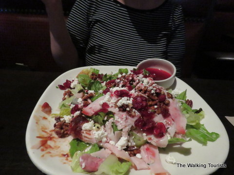 Lisa was a good girl and ordered a smoked turkey salad, with fat-free raspberry vinaigrette. It featured mixed greens, dried cranberries, goat cheese and maple spiced pecans.