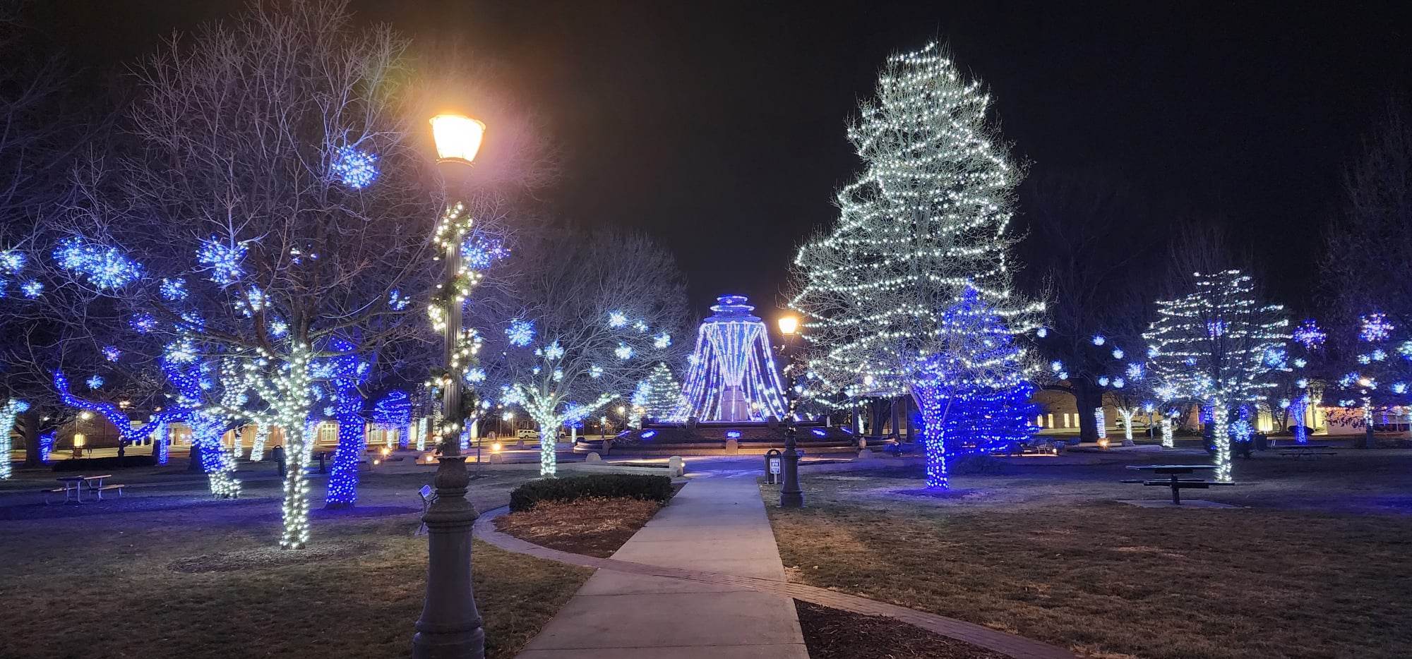 While Council Bluffs is one of the first communities to kick off the celebration with its holiday festival taking place before Thanksgiving, Bayliss Park brightens the area until early in the New Year. With blue lights enveloping the park’s water fountain, as well as white snowflake decorations hanging off trees, downtown Council Bluffs annually shows why it’s one of the best areas to explore holiday lights.