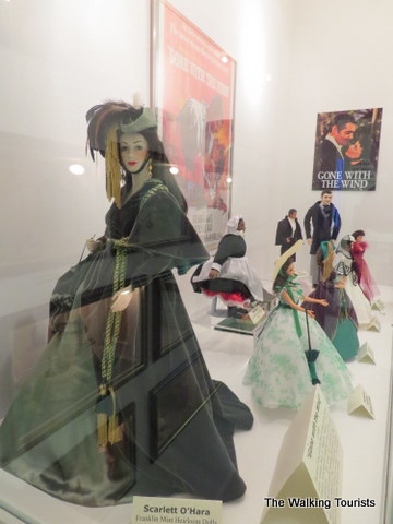And then there is the doll exhibit, which features a variety of doll types and sizes. There are special exhibits, including the dolls of “Gone with the Wind” – featuring a doll wearing the dress made from curtains – and “Wizard of Oz.”