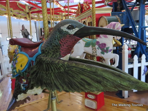 The museum also has a working carousel. Children of all ages (including my wife) can take a ride. Each character on the ride was hand carved and has its own story. Two that stood out were a Pegasus, with its beautiful art work, and a hummingbird, with a nest under the saddle.
