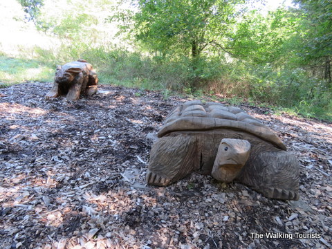 Another thing we like are the wooded carvings you see along the way. You can see a bear, birds and even a tortoise and hare racing.