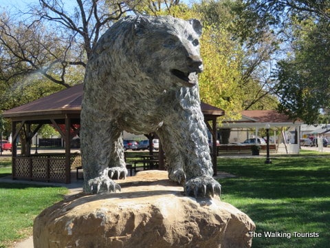 The park has a lot of interesting things to check out. I especially enjoyed the view of a bear sculpture in the middle of the park with some nice colors as backdrops.