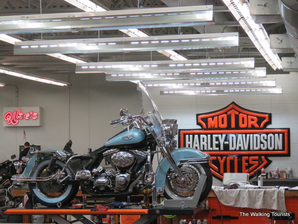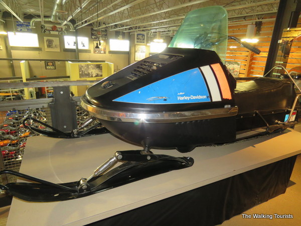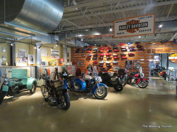 The museum – housed on the second level of the store – includes 3,000 square feet of antique motorcycles, signs, clothing and other memorabilia. We’ve visited the company museum in Milwaukee. The Kenosha museum is a nice complement to it.