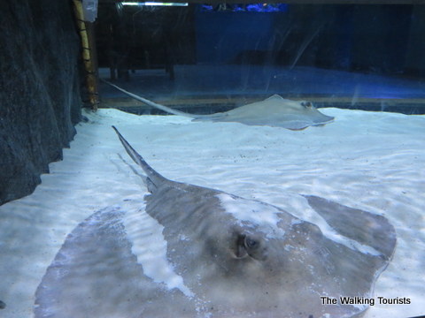 The stingray display was the largest of the sea creatures. The rays had been petted a lot during the day, a caretaker told us, so they were starting to hang out in the sand. Apparently, they will “bury” themselves in the sand when they’ve had enough social contact for a while. I liked seeing them in the sand. It seemed natural.