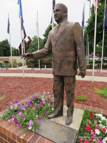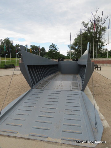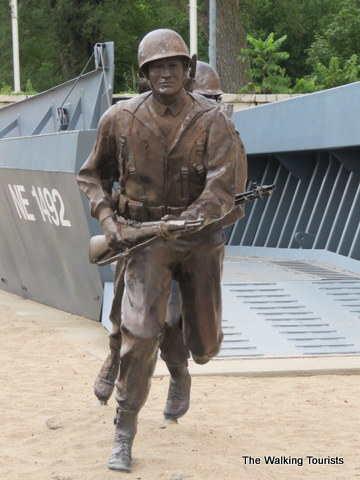 Columbus recognizes its hometown hero with a life-sized replica of the landing craft in Pioneer Park. The craft features three soldiers just outside the craft, standing on a beach’s sand.