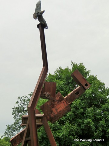 The memorial anchors the park’s other veterans and national memorials. A memorial to the victims and heroes of the terrorist attacks Sept. 11, 2001, features metal from one of the two World Trade Center buildings. An eagle is perched at the top.