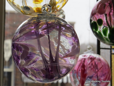 I was intrigued by the witch balls hanging in the front window. They were beautiful. Lore says they will protect people from evil spirits.