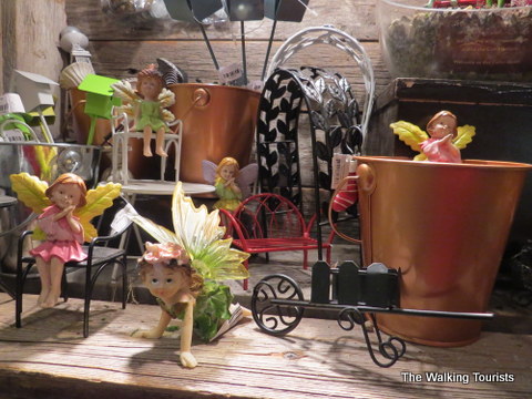 The store has a mini horse named Half-pint McGee in a small fenced-in area at the back of the store. He is well-taken care of and is walked often during the day. Half-pint’s job is to keep the fairies in check. A display of the little vixens stands near the horse. From what I could see, he’s earning his oats.