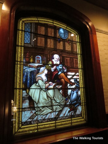 The staircase to the upper floors has a beautiful stained glass window. The artwork on the window was exquisite.