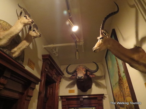 The third floor has several museum items on display. Stuffed animals were abundant – from a bobcat to a lion to mounted trophy heads.