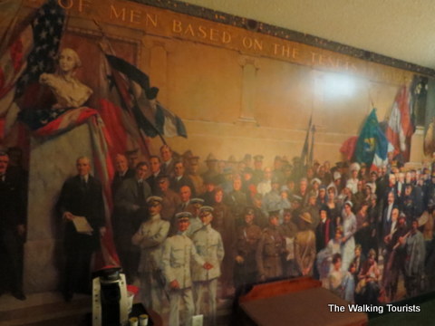 We had an opportunity to check out the World War I room. The National WWI monument and museum is located in Kansas City. You can read about our visit to the museum here – http://thewalkingtourists.com/kansas-city-home-national-world-war-i-museum/. The room has a large mural celebrating the war’s end. Maps of battles are on the desk.