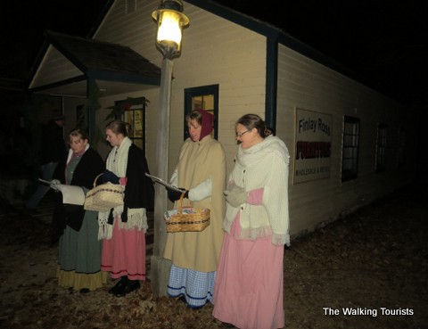 Carolers walk along the boardwalk, sharing the holiday season in song.