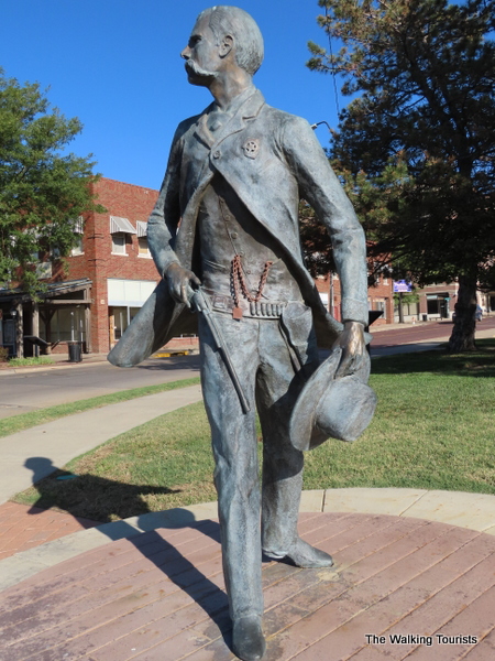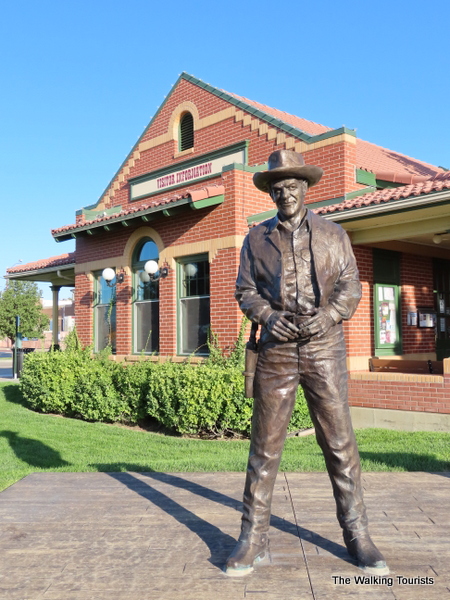 A sculpture of Arness as Marshal Dillon stands outside the visitors center, welcoming people to Dodge City.