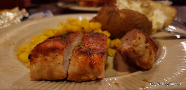 The restaurant also features western-themed decor featuring photos of cowboys and Native Americans and other memorabilia, including a bison covered in denim.