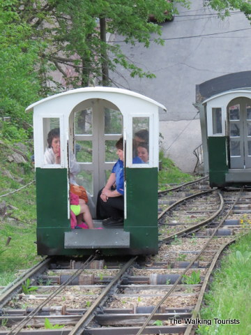 It’s always fun to sit near the top of the cable car and watch as you move up hill or see the station grow farther away on the ride down. A second cable car moves on a separate set of tracks to help keep the movement balanced.