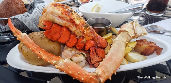 My choice was the seafood trio of jumbo shrimp, scallop and a four-ounce lobster tail. Brittany, our server, added the king crab leg to the entrée. Hoo boy! With two medium Yukon boiled potatoes and a vegetable medley, I struggled to finish the dish. I was determined not to leave any of the seafood on the dish.