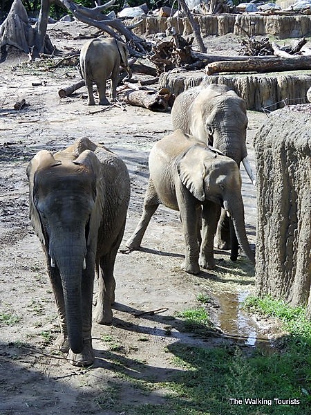 The elephants attract many visitors. People move about to get the best angle to watch the pachyderms during their daily routine. Since they have five acres – the largest such area in North America for elephants – the elephants have the luxury of moving about freely.