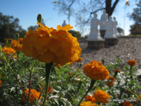 The sculptures were beautiful. The flowers surrounding the displays were impressive. For a mid-autumn day, roses and mums were in bloom. The power of Buddha?