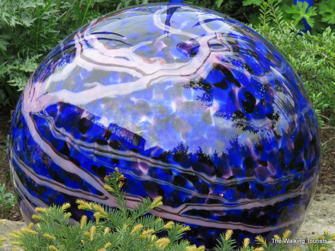 Chihuly Garden and Glass mixes blown glass art with flowers and plants.