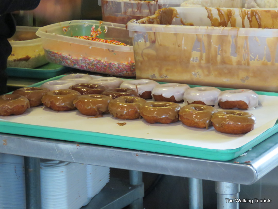 We veered off our recent goal of eating healthier on the road for breakfast at Jitters. The donut and coffee shop is a must-visit just off Historic Fourth Street. The store make fresh donuts every morning. You can watch them being made. They determine what toppings to coat the bare donuts with, including toppings to sprinkle on.