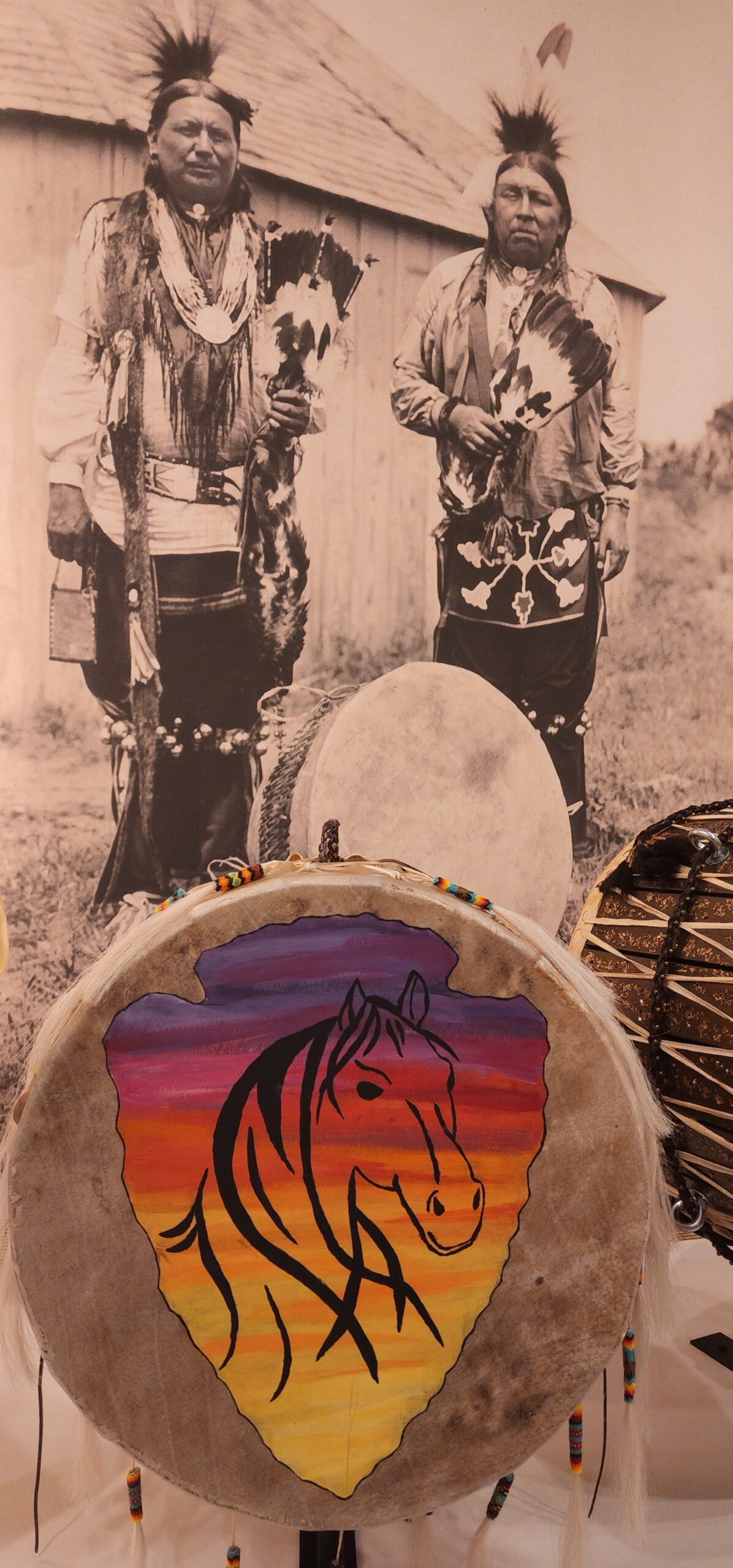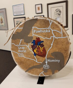 Each painted drum depicts a historically or culturally significant story. The exhibit’s goal is to create a path for others to understand the importance of the drum to the Osage culture.
