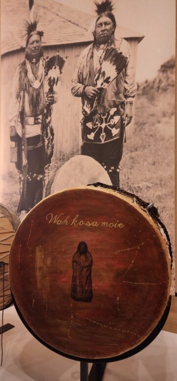 The drum exhibit complements the permanent exhibits highlighting the works of Blackbear Bosin, who designed Wichita’s iconic Keeper of the Plains, a 44-foot-tall sculpture overlooking the confluence of the Big and Little Arkansas Rivers.
