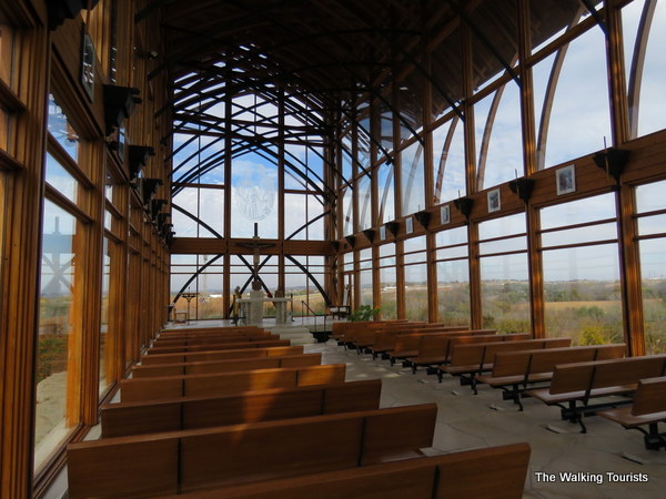 The shrine features beautiful landscaping. A small stream flows between the visitors center and the chapel. Flowers, plants and prairie grass surround the shrine.