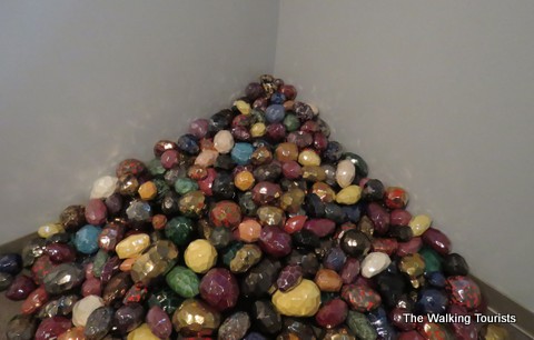 One permanent exhibit takes up a corner in the lower level hall. “Diane’s Gems” is an interesting piece by New Mexico-born Eddie Dominguez.