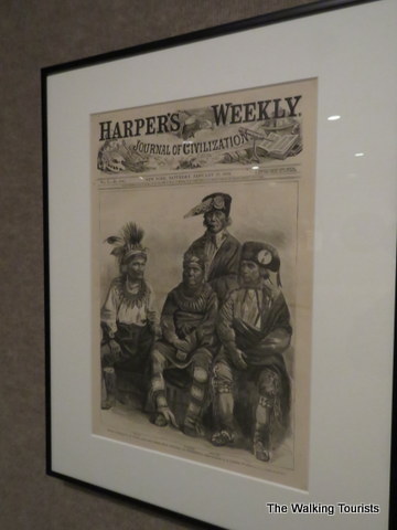 Alexander Gardner’s engraved wood exhibit highlights Native American leaders visit to Washington, DC. The carving is a copy of a photo that appeared in “Harper’s Weekly” in 1866.