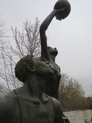 While I enjoyed the galleries, I loved the sculpture garden! “An American Dream” focuses on Nebraska basketball dreams. The statue features a male and female player.