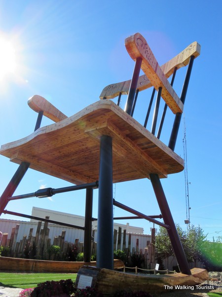 Across the street stands the world’s largest rocking chair. At about 32 feet tall, the chair weighs more than 40,000 lbs. It was created from recycled products. The chair displaced a rocking chair on Route 66 near Fanning, MO, as the world’s largest.
