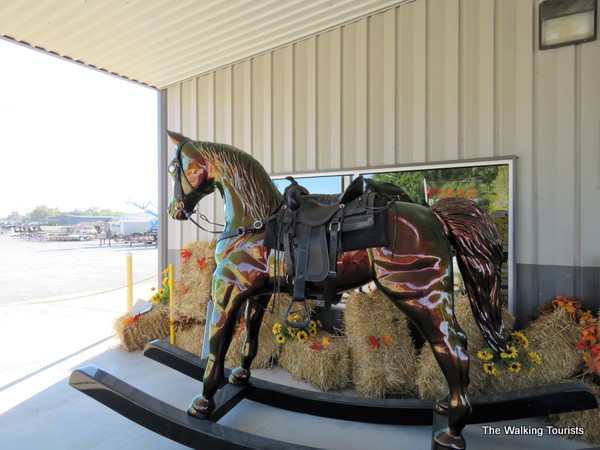 On our way out of town, we had to stop at a large wooden coin appropriately located near a bank. A short distance away is one of the most beautiful rocking horses you will ever see. Though nowhere near being a world’s largest attraction, the rocking horse is painted with unique layers that create different colors as you look at it from different angles.