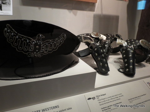 One of my family’s all-time favorite westerns is “Three Amigos.” The 1986 comedy starred Chevy Chase, Steve Martin and Martin Short as three down-and-out silent movie actors, who are thrust into action as real cowboys in Mexico to stop the “infamous” El Gaupo. A sombrero, holster set and revolvers used by Chase during the movie are on display.
